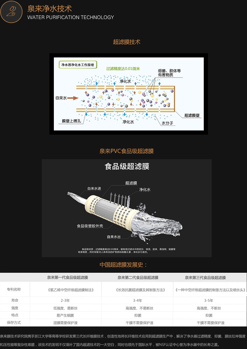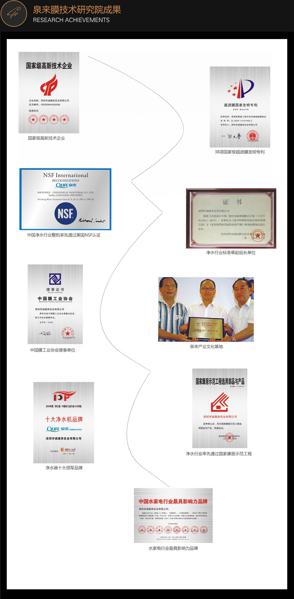 泉來研發的超濾膜技術,打破德國瀅格、荷蘭創新、美國海德能等世界知名膜企業在中國市場技術上的龔斷。為凈水器打造了屬于自己的“中國芯”,并成為中國凈水行業唯一擁有38項國家級超濾膜發明專利企業。