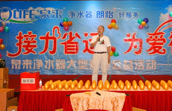 “泉來”作為中國凈水器行業(yè)十大品牌之一,19年專注凈水,擁有國際領先的超濾膜技術和反滲透凈水器研發(fā)能力,其技術實力、生產(chǎn)規(guī)模、產(chǎn)品品質(zhì)長期處于行業(yè)領先地位。在做好產(chǎn)品的同時,泉來始終堅持秉承“改善水質(zhì)、服務社會”的企業(yè)使命,將公益活動與泉來產(chǎn)品有機結合,曾先后為雅安地震災區(qū)、汶川地震災區(qū)捐贈上百萬元凈水設備用于災后救援飲水支持,連續(xù)5年為揚州國際馬拉松賽事現(xiàn)場建立直飲水點。多年來泉來一直積極于公益事業(yè)活動。類似此次的愛心公益活動泉來集團也將持續(xù)在全國各地召開,為提高國人的飲水品質(zhì)貢獻自己的力量。
