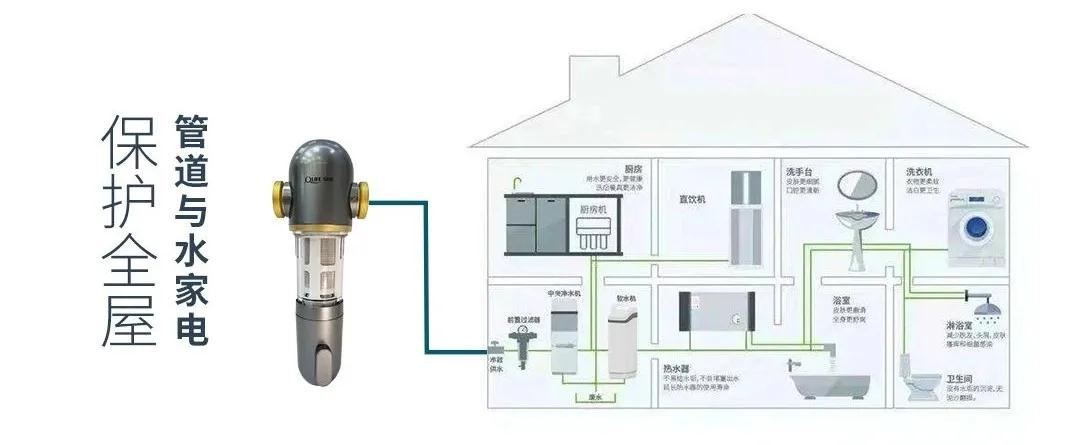 2涉水電器使用壽命用上前置過濾器,給入戶的自來水進行一次粗過濾,40微米過濾精度,去除泥沙、鐵銹、蟲卵等有害雜質,過濾效果特別明顯,有效提升自來水水質。洗衣機、熱水器、花灑等涉水電器的維修次數大大減少,延長使用壽命。